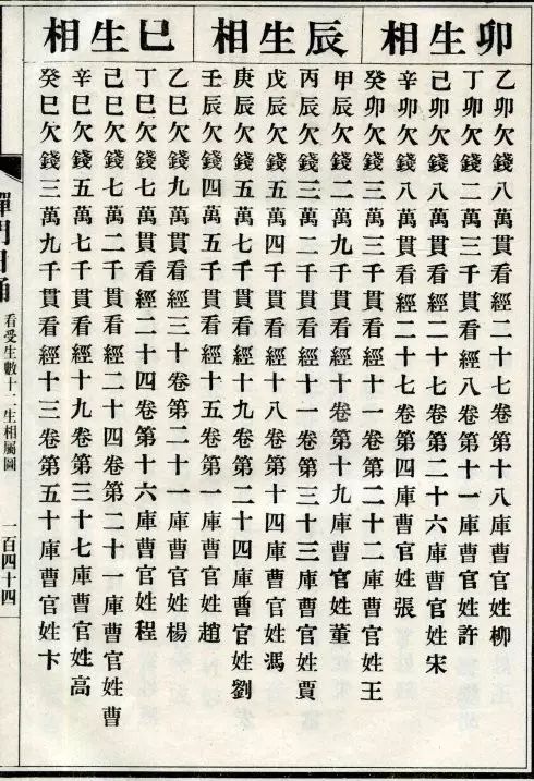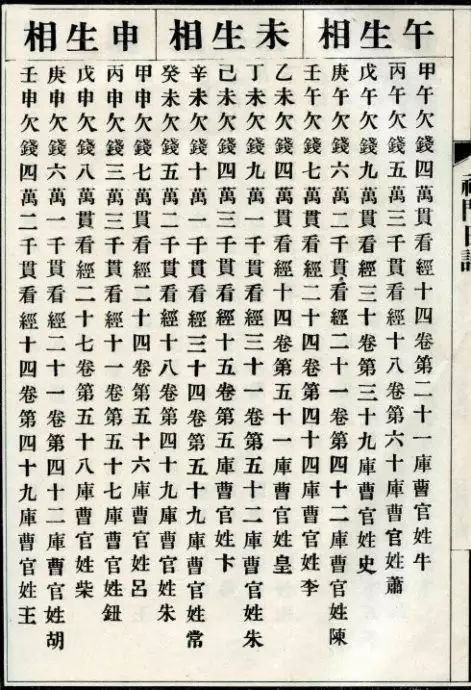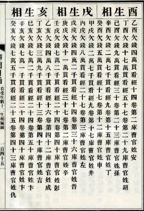 出生年(干支)出生年(公元)欠钱(贯)看经(卷)纳(库)曹官(姓)